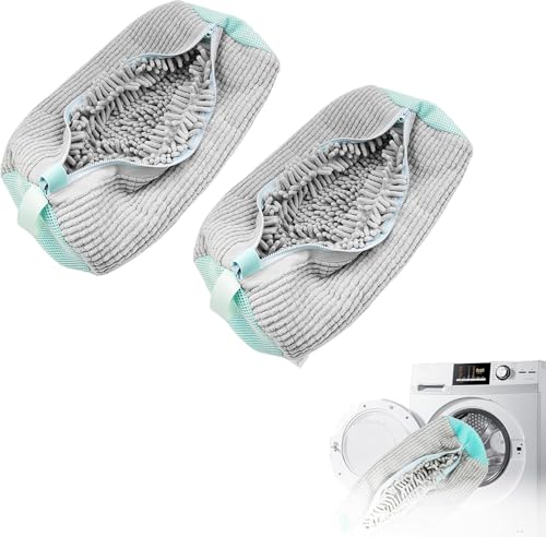 Sac Linge Machine à Laver Réutilisable, Filet Linge Chaussures Protéger, Sac Lavage Chaussures, Shoe Cleaning Bag pour Tous Types de Chaussures (2PCS, Gris)