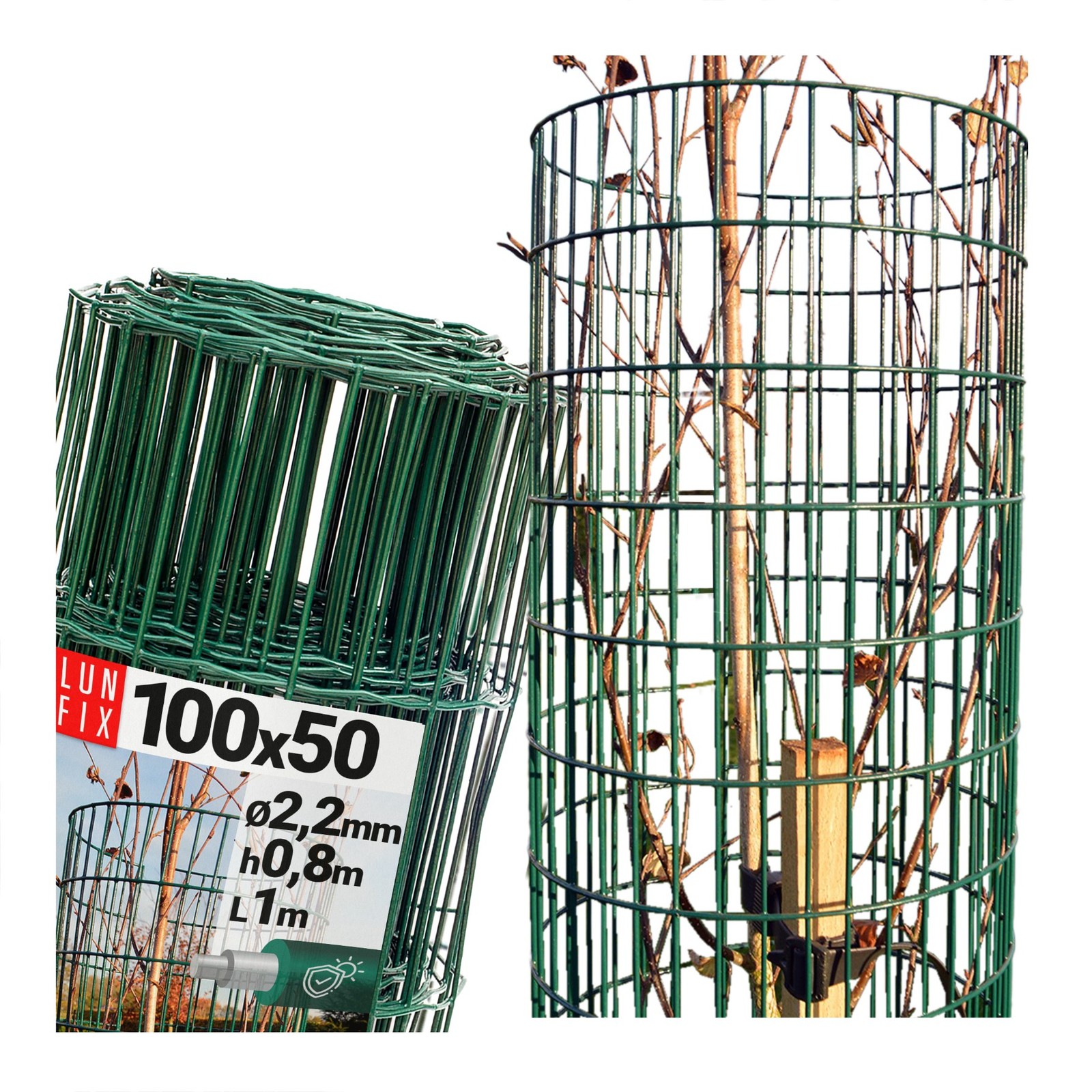 Filet de protection arbre 100x50mm maille 2,2mm galvanisé PVC vert 0,8x1m