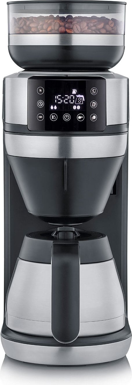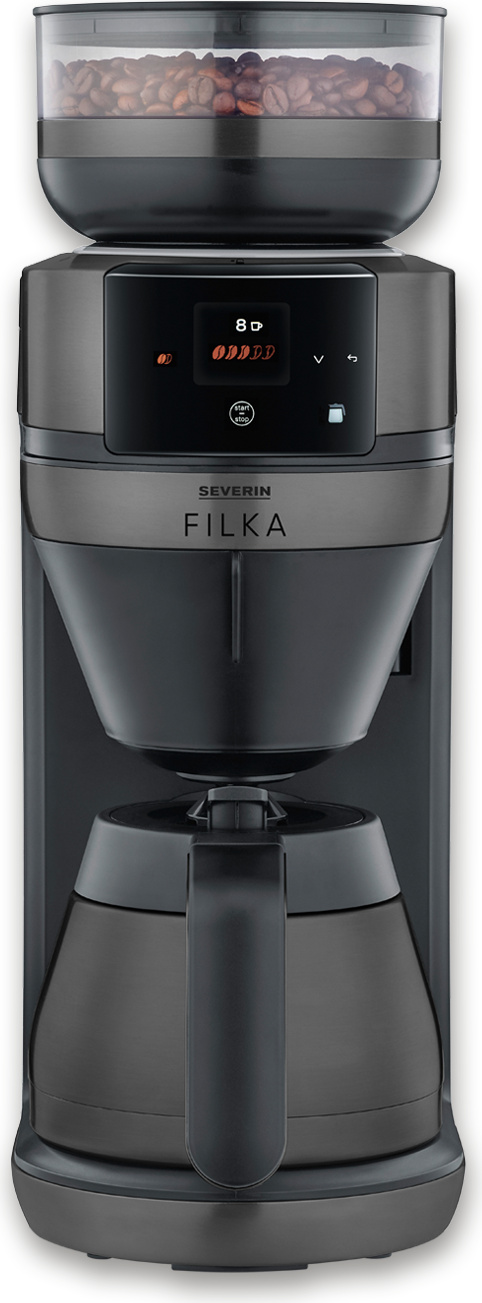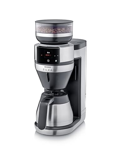 Severin Cafetière filtre automatique FILKA verseuse isotherme, Cafetiere avec broyeur, Adapte la quantité d'eau à votre envie : mug, tasse, verseuse, KA 9695, Inox/Noir