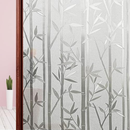 Film de Fenêtre Verre Dépoli 70 x 190 cm Anti Chaleur Non Adhesif Film Para Fenetre Anti Regard pour Chambre Bureau Cuisine, Bambou