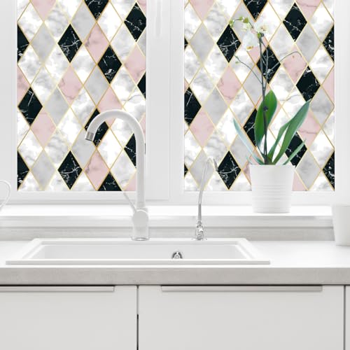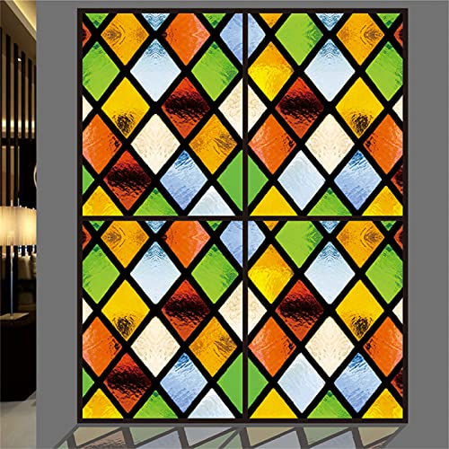 Film de Vitre Fenêtre Auto-adhésif, Film Fenetre Anti Regard, Film Opaque Vitrage, Électrostatique Film Décoratif de Fenêtre pour Bureau Cuisine, 60x200 CM, Losange à Carreaux de Couleur