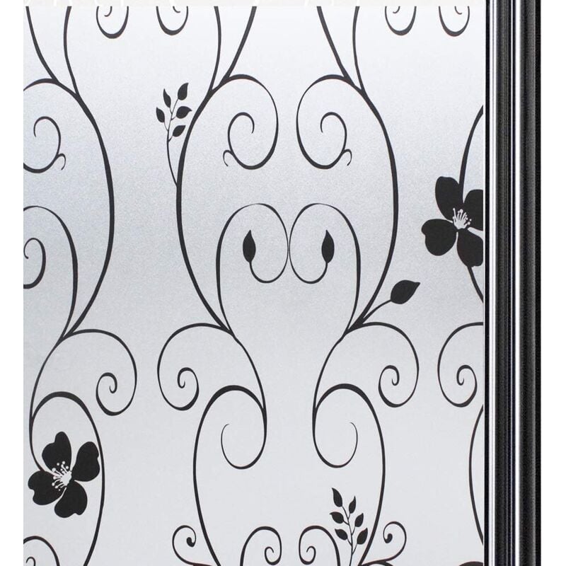 Ambiance Sticker Adhésif Film Fenêtre Anti Regard Occultant - Fleurs Noir - Autocollant Brise-Vue pour Vitres & Porte de Douche Large - H40 x L100 cm