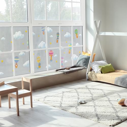 Ambiance Sticker Adhésif Film Fenêtre Anti Regard Occultant - Animaux en Montgolfières - Autocollant Brise-Vue pour Vitres & Porte de Douche XL - H40 x L200 cm