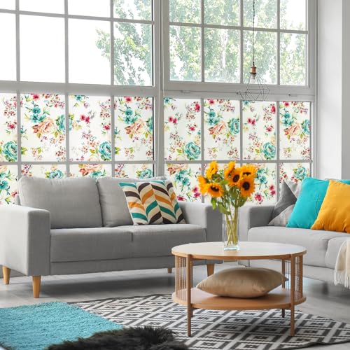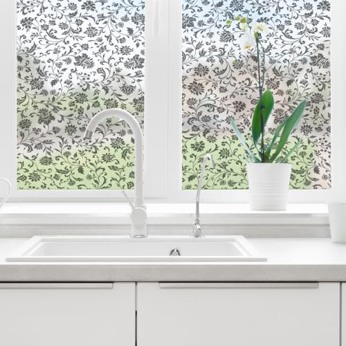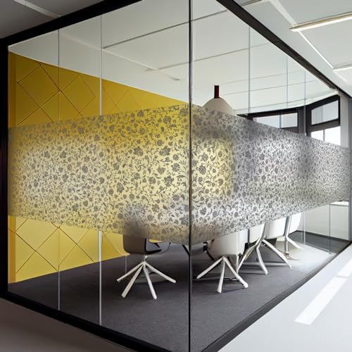 Ambiance Sticker Adhésif Film Fenêtre Anti Regard Occultant - Motif Floral - Autocollant Brise-Vue pour Vitres & Porte de Douche Large - H40 x L100 cm