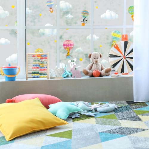 Ambiance Sticker Adhésif Film Fenêtre Anti Regard Occultant - Animaux en Montgolfières - Autocollant Brise-Vue pour Vitres & Porte de Douche Large - H40 x L100 cm