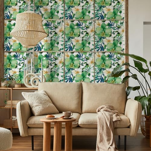 Ambiance Sticker Adhésif Film Fenêtre Anti Regard Occultant - Orchidée Verte - Autocollant Brise-Vue pour Vitres & Porte de Douche Large - H40 x L100 cm