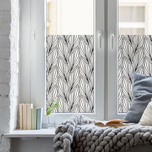 Ambiance Sticker Adhésif Film Fenêtre Anti Regard Occultant - Feuilles Tressées - Autocollant Brise-Vue pour Vitres & Porte de Douche Large - H40 x L100 cm