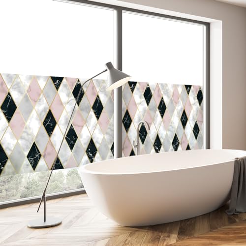 Ambiance Sticker Adhésif Film Fenêtre Anti Regard Occultant - Losanges Chic - Autocollant Brise-Vue pour Vitres & Porte de Douche Large - H40 x L100 cm