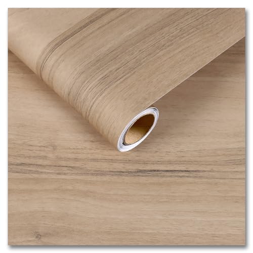 CRE8TIVE Papier Peint Bois Marron Clair Papier Adhesif pour Meuble Cuisine Vinyle Adhesif Bois Autocollant Papier Peint Cuisine Impermeable Salle de Bain Film Adhesif pour Meuble Armoire 30cm x 200cm