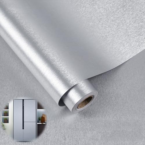 LaCheery Argenté Papier Adhesif pour Meuble Cuisine Tréfilé Effet Aciers Inoxydables 40cm x 700cm Vinyle Papier Adhésif Cuisine Imperméable Film Adhesif pour Meuble Armoire Réfrigérateur Salle de Bain