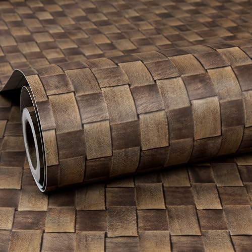 ReWallpaper Papier Adhesif pour Meuble Effet Cannage Papier Peint Autocollant Cannage Marron Foncé 40CMx3M Rotin Papiers Peints Vintage Chambre Film Adhesif Decoratif Mural pour Porte Armoire
