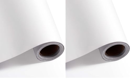 Diboniur Papier Adhesif pour Meuble, 40 x 300 cm Mat Blanc, Rouleau Adhesif Film Autocollant Adhesif Stickers Papier Collant pour Meuble Cuisine Comptoirs (Lot de 2)