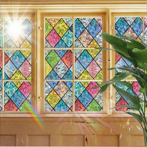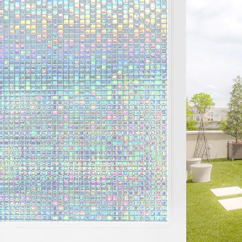 Film Fenetre Anti Regard,90x200CM Film Occultant Fenêtre Film Electrostatique Vitre Effet 3D Arc-en-Ciel,Anti UV Anti Chaleur pour Chambre, Bureau, Cuisine, Maison