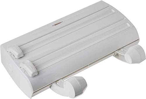 Organiseur 3 en 1 avec Cutter Comprenant 2 Rouleaux de Film Plastique et Distributeur de Papier d'aluminium, Support magnétique pour Papier essuie-Tout pour réfrigérateur