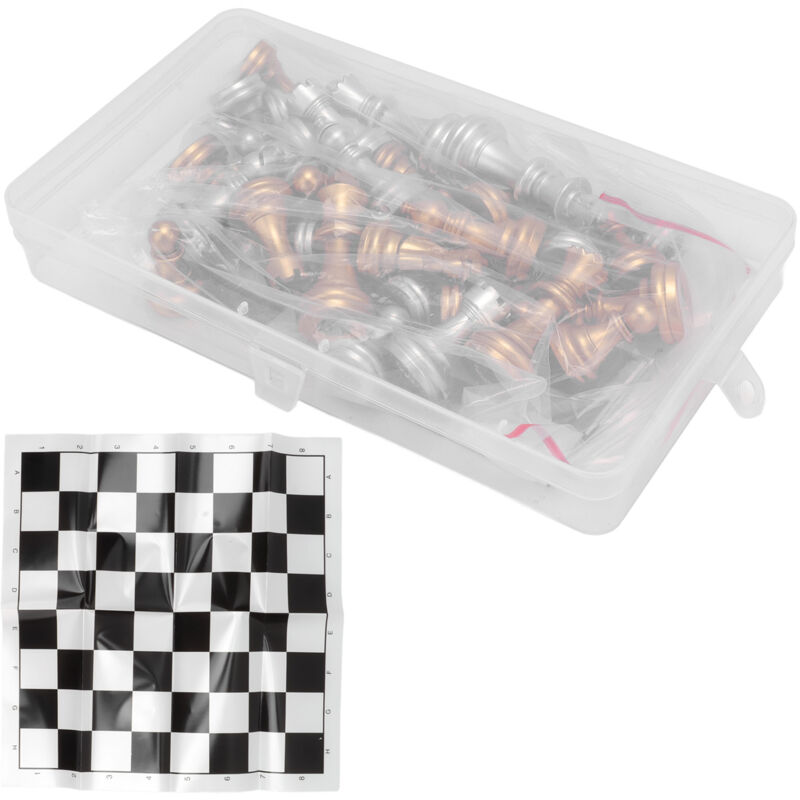 Échiquier Portable avec Pièces Électrodorées Or et Argent, Plateau en Film Plastique, Jeu d'Échecs de Voyage Compact