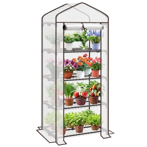 Sekey Mini Serre à tomates avec 4 étagères, Film Plastique, Petite Serre à tomates, Balcon, Jardin, Petite Serre en Film Stable, 160 x 70 x 50 cm, Blanc/Vert
