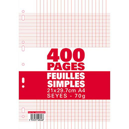- Feuillets mobiles Seyès 21x29,7 cm 400 pages grands carreaux blanc 70g sous film plastique