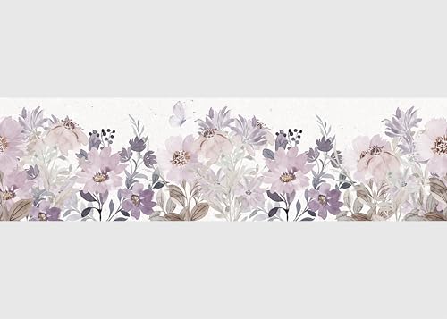 AG Design AWB 8482 Frise autocollante en forme de fleur d'aquarelle violette imperméable pour murs, meubles, papiers peints, revêtements muraux et portes, film plastique, largeur 500 cm x hauteur 13,8