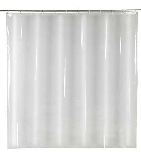 WENKO Rideau de douche Salda Transparent, en film plastique recyclable et écologique (PEVA), pour douche et baignoire, imperméable, 180 x 200 cm, inclut 12 anneaux de rideau de douche blancs