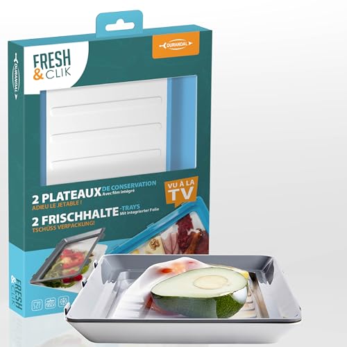 Durandal Boite a lunch Boite a lunch box Fresh & Clik I Lot de 2 plateaux de conservation alternative à film plastique alimentaire I Film alimentaire reutilisable
