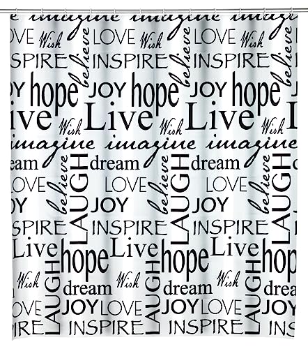 WENKO Rideau de douche Samoa, à base film plastique écologique et recyclable (PEVA), pour la baignoire, étanche l'eau, 180 x 200 cm, 12 anneaux blancs inclus, noir/blanc, 25232100
