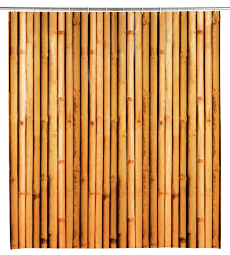 WENKO Rideau de douche Bambusa, rideau à base de film plastique écologique et recyclable (PE), pour la douche et la baignoire, étanche à l'eau, 180 x 200 cm, 12 anneaux blancs inclus, marron