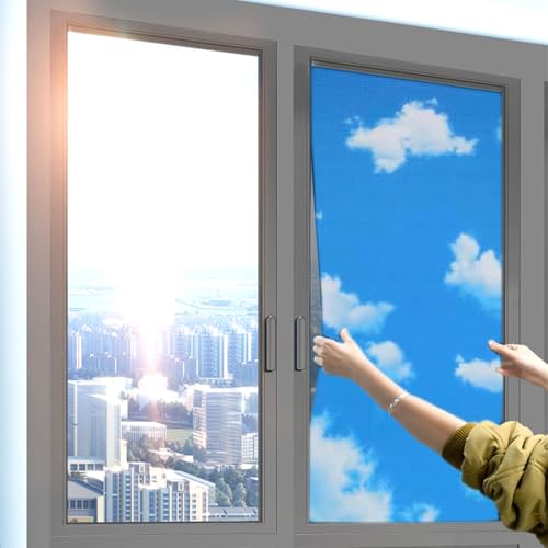 LJDJRHXH Film Aluminisé Réfléchissant Anti Chaleur, 30 50 60 70 80 90 100 cm L Film Isolant Occultant Anti UV pour Vitrage, Film Fenêtre Anti Regard Protection Solaire avec Ventouse(100cmx110cm)