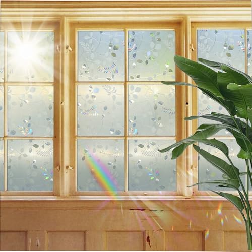 Film Fenetre Anti Regard Electrostatique 70 x 100 cm, Protection de La Vie Privée Protéger du Soleil, Repositionnable, Film Transparent Autocollant,avec Outil,pour Salle Bain,Fleurs Oiseaux