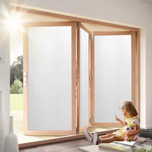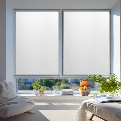 Film Fenetre Anti Regard Electrostatique Film pour Vitre Occultant Non-Adhésif Anti UV Protége Intimité pour Bureau Maison Salle de Bain Chambre Cuisine (Blanc-Demi, 90 * 400CM)