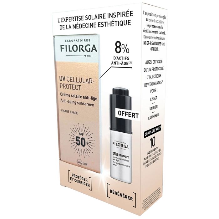 Filorga UV CELLULAR-PROTECT Crème Solaire Anti-Âge SPF50+ 40 ML + NCEF - REVITALIZE Sérum 5 ML OFFERT