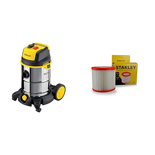 Stanley SXVC30XTDE Aspirateur Solides et Liquides (1600 W, 30 l) & Filtre Cartouche à Haute Efficacité pour Aspirateurs Solides et Liquides