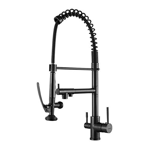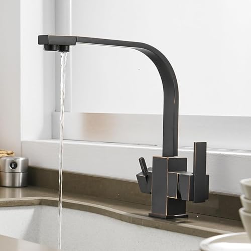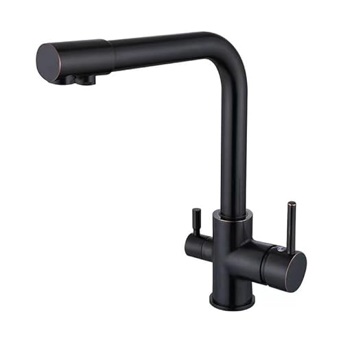 Robinet D’évier De Cuisine 3 en 1 Filtre à Eau Potable Robinet De Cuisine Robinet De Cuisine Pivotant à 360 ° à Trois Voies avec 2 Leviers, Black Retro