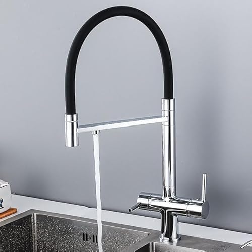 XANAYXWJ Robinet mitigeur de Cuisine à 3 Voies, mitigeur kchen, robinets d'évier de Cuisine pivotants à 1 Trou avec Filtre à Eau, Robinet de Cuisine en Laiton Noir, chromé
