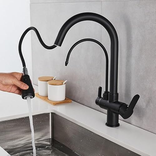 KKXXYQFC Robinet d'eau Potable Robinet 3 Voies extractible Noir Double Mode Filtre à Eau Robinet de Cuisine avec mitigeur à 2 leviers pour évier de Cuisine