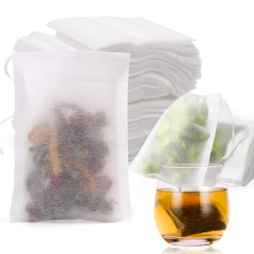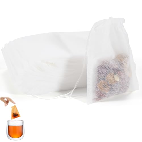 Vinabo 400 Filtre à Thé Jetable, Sachet The a Remplir Jetable avec Cordon de Serrage, 7 X 9 cm Sachet de Thé Réutilisable, pour Thé En Vrac, Café, Thé de Fleurs, Herbes, Epices, Lavande (Lot de 5)
