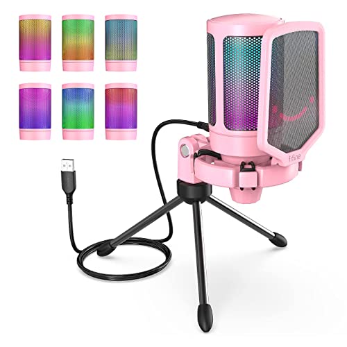 Hoppac USB Microphone, Micro PC Micro Gaming avec Trépied et Filtre Anti-Pop, Micro Gamer à Condensateur pour Podcasting, Streaming, avec lumière RGB, pour PC, PS4/5, Mac, Windows