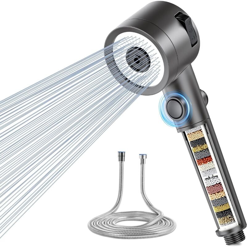 Pommeau de douche anticalcaire avec filtre à 20 niveaux, pommeau de douche haute pression et flexible de 1,5 m, pommeau de douche à 3 jets pour salle