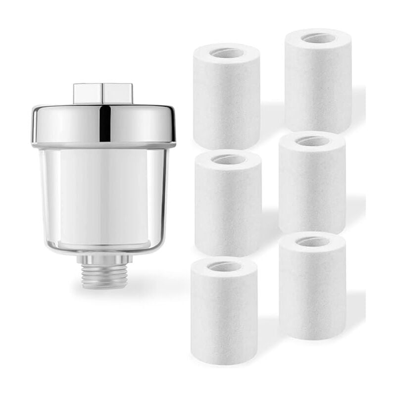 QWORK® Filtre de Douche, Filtre pommeau de Douche avec 6 éléments filtrants interchangeables, Filtre Anti-calcaire