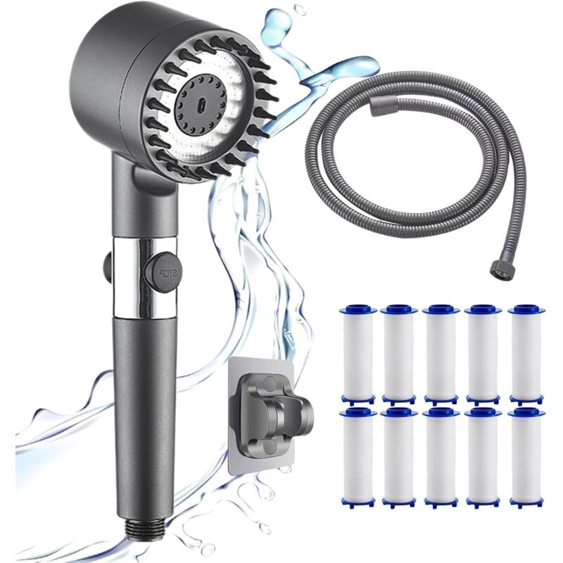 SUBZONAL-Pommeau de Douche Haute Pression et Économie d'Eau 10-en-1 avec Fonction Stop et Douchette, Filtre Anticalcaire à Cartouche PP, Tuyau 1.5M et Support Inclus, 3 Filtres Offerts