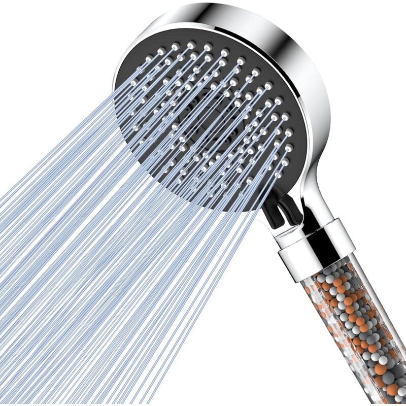 Pommeau de douche avec filtre, économie d'eau, haute pression avec 5 types de jet, pulvérisateur à main anti-calcaire, type jet de pluie pour eau