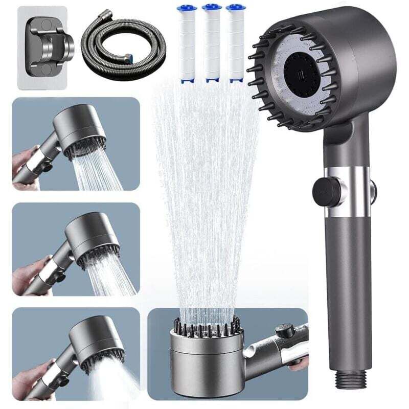 Filtre de pommeau de douche anti-calcaire à économie d'eau avec 3 modes de haute pression - RWDouchettes