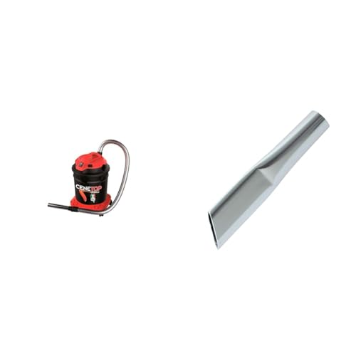 RIBIMEX PRCEN012, Cenetop Aspirateur à Cendres Professionnel 1200 W – 18 L avec Filtre Automatique, Rouge/Noir & Ribitech PRCEN000/L Buse Plate pour avaleur de Cendre, Alu