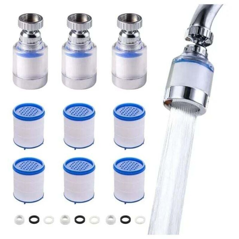 3 Pièces Filtre Robinet Anti Calcaire Rotatif à 360°, Transparent, Avec 6 Éléments Filtrants En Coton Pp, Filtre Robinet