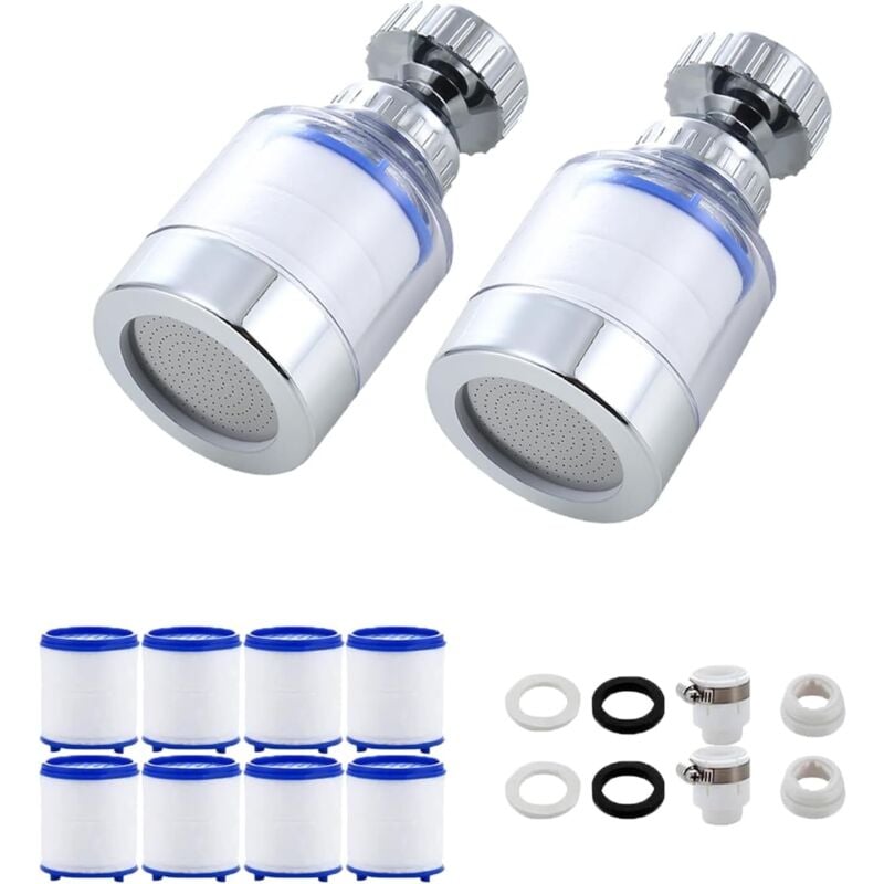 Filtre à eau pour robinet - Anti Calcaire - Rotatif 360° - 2 pièces - 8 éléments filtrants