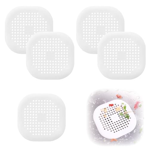 5 Article Filtre Cheveux Baignoire/Douche(12.2×12.5×3.5cm)+1 pincettes,Silicone Blanc Anti Cheveux Douche,Filtre a Cheveux pour Douche,Attrape Cheveux