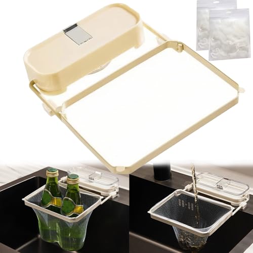 OUDIOHAI Suction Cup Sink Strainer, Filtre évier de Cuisine Pliable, Sacs de Filtre D'évier en Maille, Crépine Filtres à Tamis Portable Passoire Evier Porte, avec 100 Sacs Filtrants, pour Déchets