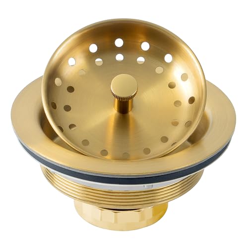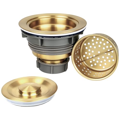 LQS Filtre de vidange d'évier de Cuisine en Acier Inoxydable 304 avec Panier à déchets Profond Amovible et Couvercle d'étanchéité de 8,9 cm, doré