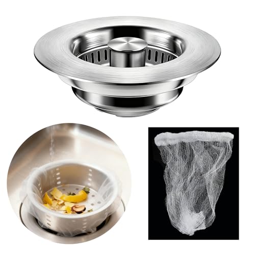 Bouchon Evier Cuisine Et Filtre Evier Cuisine, 3 En 1 En Acier Inoxydable Pop-Up Bouchon éVier Convient Aux éViers De 75 à 87 Mm De DiamèTre Et De Profondeur >37 Mm, Contient 30 Sacs De Filtre D'évier