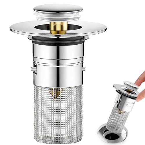 Bouchon Lavabo Pop Up INOX 304, Universel Bouchon Evier Salle de Bain avec Filtre, Filtre de Vidange D'évier de Cuisine, Filtre Evier Pop-Up pour Bain, Évier, Cuisine