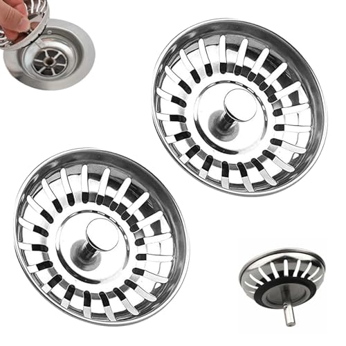 KASESSS 2 Pièces Bouchon Evier Cuisine, 78mm Filtre Evier Cuisine, Bonde Evier Cuisine, Acier Inoxydable Accessoires pour Evier de Cuisine Filtre D'évier Cuisine pour Drainage Rapide, Anti-Obstruction